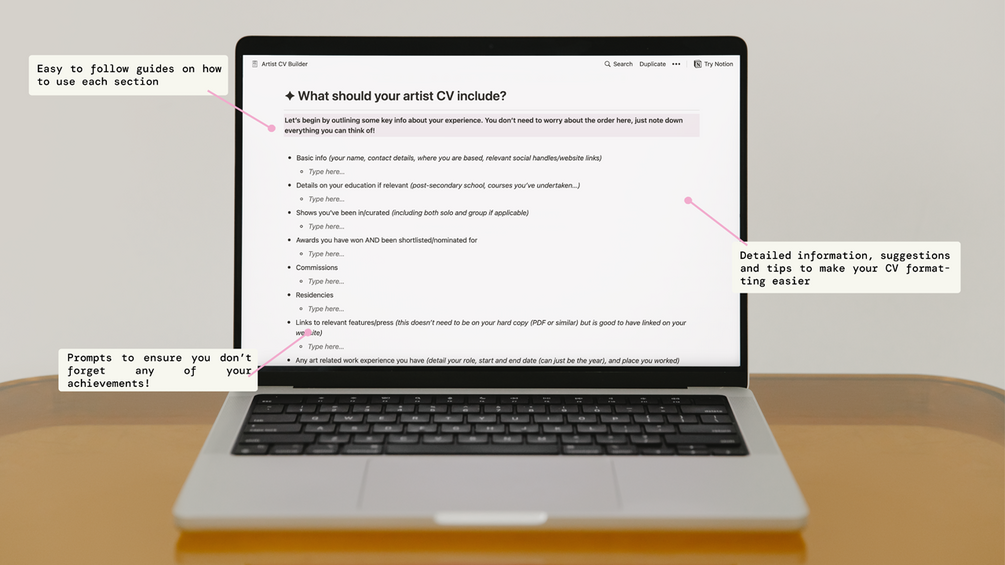 - Notion workbook with prompts and inspiration to help you formulate your CV